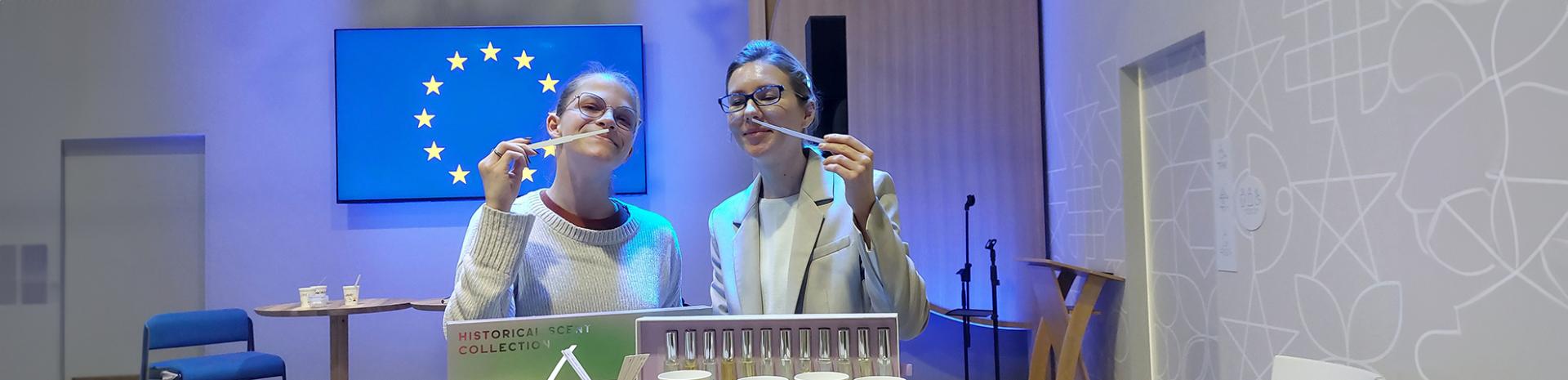 So half das ODEUROPA-Team bei der Entwicklung einer duftbasierten Führung im Museum Ulm, einem Museum für Kunst, Archäologie, Stadt- und Kulturgeschichte in Ulm, Deutschland.