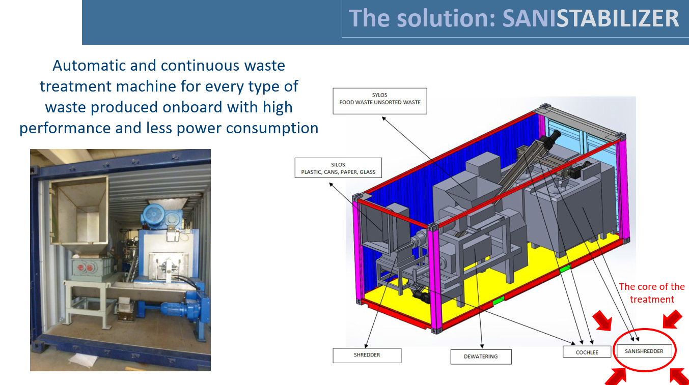 Das Ergebnis, das wir mit diesem Projekt erreichen wollen, ist die Schaffung eines abfallfreien Schiffes. Unsere Innovation führt zu einem bereits sauberen Abfallprodukt (besonders wichtig bei Kunststoffen), das den Recyclingbetrieben 30 % an Zeit, Kosten, Wasser und Druckluft einspart, da das Material bereits sauber und trocken und bereit für das Recycling ist.