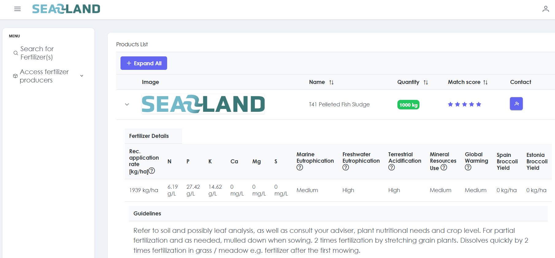 The Decision Support System can be accessed at https://sea2land.sid-isq.com/; all information included in this section is reflected in the platform. This decision support system has been designed and implemented to help users select a suitable fertiliser for a specific need and area. The functional requirements are: