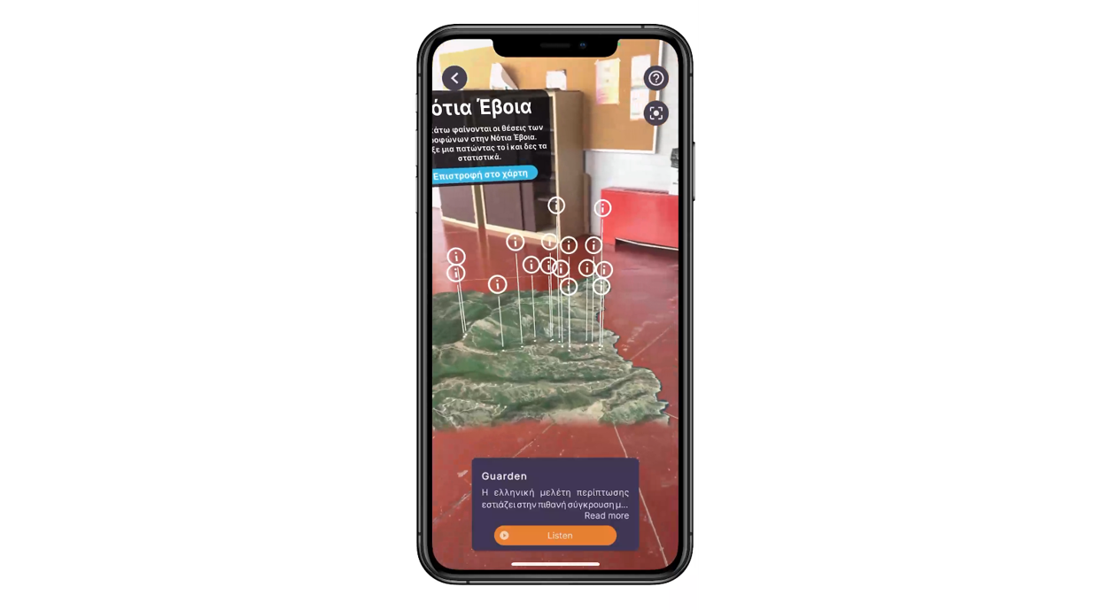 Main features: AR visualisation of 3D simulation models tailored to stakeholder groups; interactive terrain annotation and guidance tools.