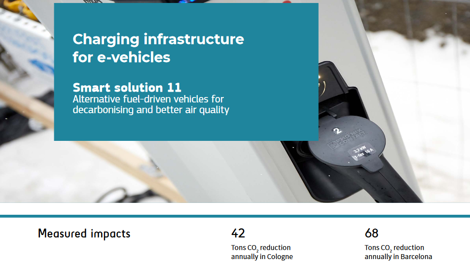 The project introduced five rapid charging points in Barcelona and one in Stockholm. A further eight normal charging points were installed at Valla Torg in Stockholm. A total of 10 charging stations (each with 2 charging points) using green electricity from renewables were installed in the project area in Cologne. In addition, an innovative form of Vehicle-to-Building charging was demonstrated in Barcelona.
