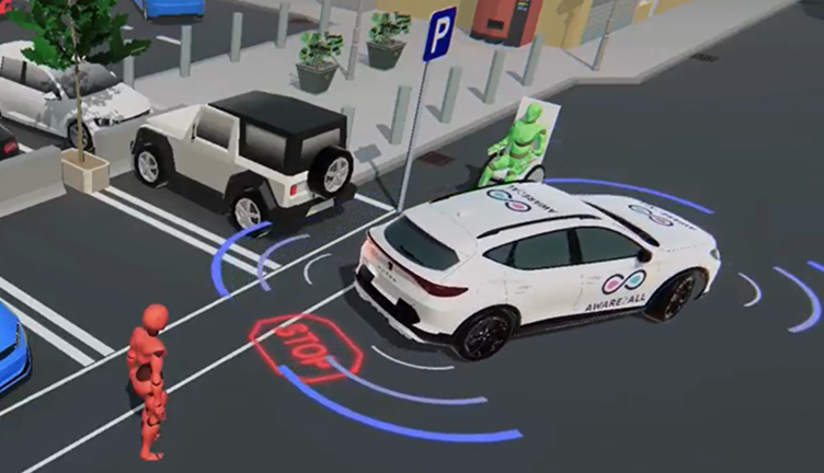 The eHMI is a surround perception system that will allow the HAV to identify the HRUs behaviour and to anticipate safety critical situations. It includes a sound interface and visual message-based lighting system. The system comprises module capable of displaying dynamic shapes or symbols using MiniLED technology, and a static projection lighting system as well as an AVAS for audio interaction with Vulnerable Road Users (VRUs).