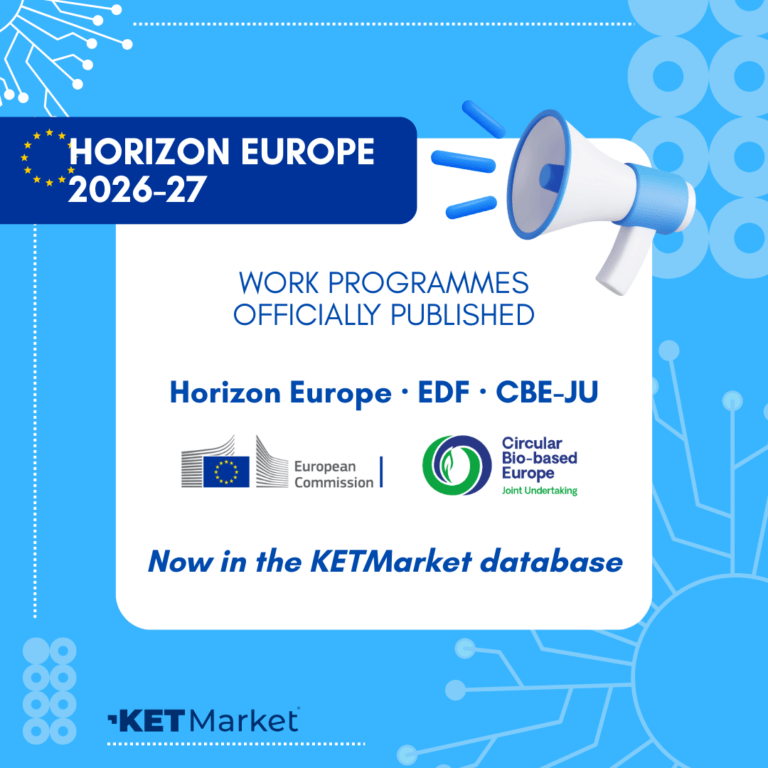 We have already fully integrated and updated all newly published calls into the KETMarket platform. This means you can now access the complete and up-to-date set of EU funding opportunities for the upcoming period— structured, searchable, and in one place.